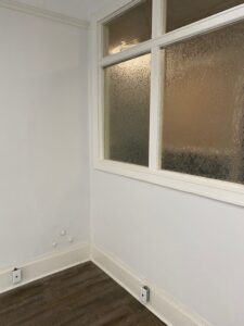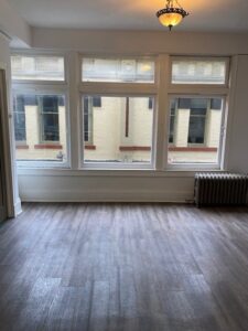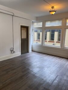 Professional space available on the second floor of the Central Building. Newly installed laminate flooring. Large bright windows facing Trounce Alley.